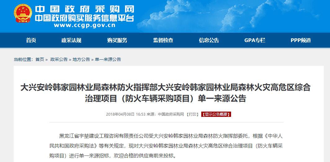 據(jù)林業(yè)局領導介紹,該批車輛到達林業(yè)局后下發(fā)至林業(yè)局防火辦,主要用于森林滅火人員物資輸送,后勤保障救援,防火器材運輸?shù)戎饕ぷ,因此對車輛的質(zhì)量要求極其嚴格,對我們公司提供的防火車輛給出高度評價,此批車輛為韓家園林業(yè)局經(jīng)過層層篩選,反復招投標后才確定的車型,公司接到中標通知書時也是很激動,能接上這樣的森林防火設備運輸車,也對我們的服務,質(zhì)量提出更高的要求。該局領導介紹由于林區(qū)防火公路多為簡易道路,對車輛通過性要求很高,我公司提供的四驅(qū)越野卡車能夠滿足他們的需求。下圖為招標公示。