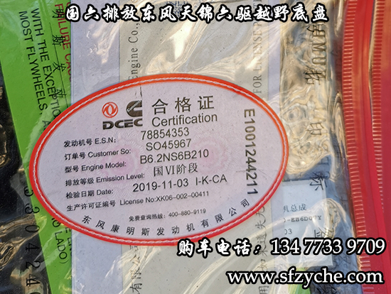 國(guó)六排放東風(fēng)天錦六驅(qū)越野底盤(pán),東風(fēng)天錦D530一排半駕駛室,6×6驅(qū)動(dòng),康明斯B6.2NS6B210國(guó)六發(fā)動(dòng)機(jī)210馬力,最大扭矩:850N.m/1100-1700rpm,排量6.2L、韶齒手動(dòng)六檔變速箱,東風(fēng)德納車(chē)橋,前驅(qū)動(dòng)橋4.5噸,中后橋都為軍工德納4.5噸驅(qū)動(dòng)橋,大花紋越野輪胎,軸距3500+1250mm,電動(dòng)玻璃,方向助力,斷氣剎,ABS,大燈自動(dòng)調(diào)節(jié),自動(dòng)調(diào)整臂,選裝原廠(chǎng)空調(diào)。