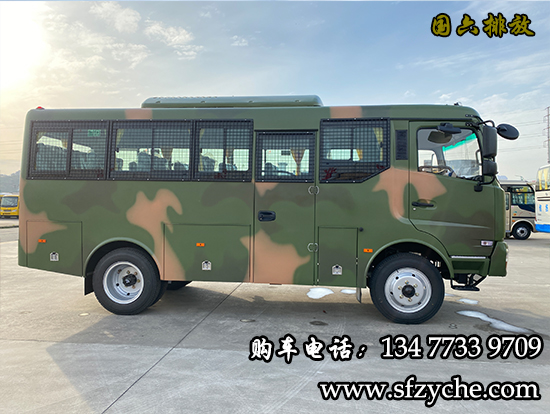 EQ6680ZT6D型10-23座四驅(qū)森林消防運(yùn)兵車配置:采用東風(fēng)EQ6640KZ6T型四驅(qū)越野三類底盤,發(fā)動機(jī)型號:D4.0NS6B170康明斯170馬力國六排放,4.0L排量帶增壓,變速箱為法士特手動六檔變速箱,整車外形尺寸長寬高(6800X2280X3155)mm ,軸距3800mm,驅(qū)動形式:4×4,離合助力,方向助力,斷氣剎,鼓式制動,ABS,行車記錄儀,車橋?yàn)闁|風(fēng)德納2.7噸驅(qū)動前橋,5.5噸驅(qū)動后橋,3.5噸分動箱,輪胎為7.50R20鋼絲胎,工具箱3個,粘接式推拉玻璃,鋁花紋地板,中檔座椅,手動式外擺門,駕駛室正副司機(jī)門,整車窗簾,滅火器1個,備胎一個,其它為EQ6680ZT6D型四驅(qū)越野客車標(biāo)配。選裝配置:東風(fēng)派恩大功率頂置空調(diào),獨(dú)立柴油鍋爐暖風(fēng),頂置警燈帶喊話器,頂置行李架帶爬梯,后對開門,中置氣動門等。