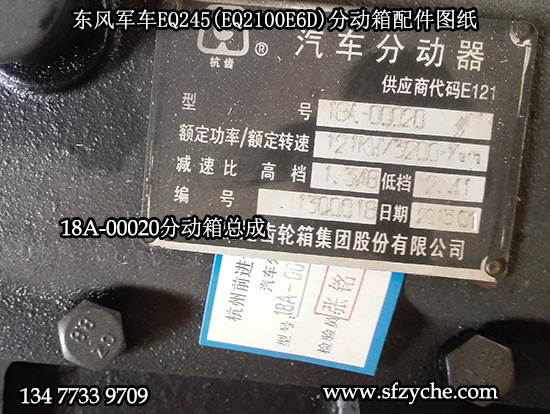 EQ245分動(dòng)箱銘牌型號(hào)為:18E03-0020