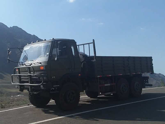 東風(fēng)六驅(qū)越野DFS5160TSML2型沙漠車_東風(fēng)老款153型六驅(qū)越野沙漠車越野性能:東風(fēng)康明斯6缸BT系列210馬力柴油增壓發(fā)動(dòng)機(jī) 12.5R20鋼絲子午線越野花紋加寬型輪胎 軍工機(jī)械式六檔變速箱 新型發(fā)動(dòng)機(jī)、全油路、進(jìn)氣道自動(dòng)電加熱系統(tǒng),可在-41℃環(huán)境下在駕駛室內(nèi)一鍵啟動(dòng) 250mm雙層車架,承載能力加倍提升 350L超大油箱,滿足1300公里無(wú)需加油 三座單臥、環(huán)形儀表臺(tái)新款駕駛室 后置絞盤(pán),牽引力44100N(選裝)?稍诖嗽揭暗妆P(pán)基礎(chǔ)上改裝成越野廂式車,越野油罐車、越野灑水車、越野消防車、越野隨車吊、越野吸污車、越野平板車、越野運(yùn)兵車等專用越野車型。