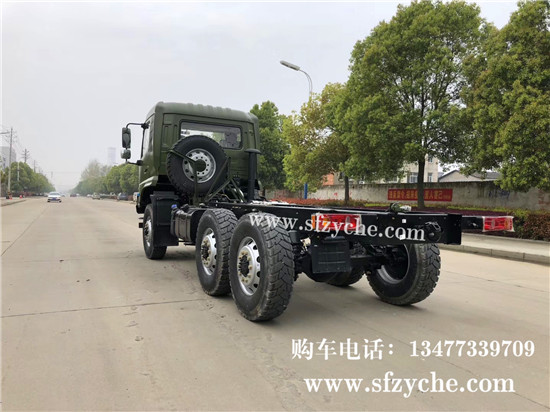 國(guó)六排放東風(fēng)天錦六驅(qū)越野底盤配置,東風(fēng)天錦D530一排半駕駛室,6×6驅(qū)動(dòng),康明斯B6.2NS6B210國(guó)六發(fā)動(dòng)機(jī)210馬力,最大扭矩:850N.m/1100-1700rpm,排量6.2L、韶齒手動(dòng)六檔變速箱,東風(fēng)德納車橋,前驅(qū)動(dòng)橋5噸雙聯(lián)半軸結(jié)構(gòu),中后橋都為軍工德納5噸驅(qū)動(dòng)橋,315/80R22.5大花紋越野輪胎,280mm雙層大梁,軸距3500+1250mm,電動(dòng)玻璃,方向助力,斷氣剎,ABS,大燈自動(dòng)調(diào)節(jié),自動(dòng)調(diào)整臂,原廠空調(diào)。車架可利用尺寸5000mm。