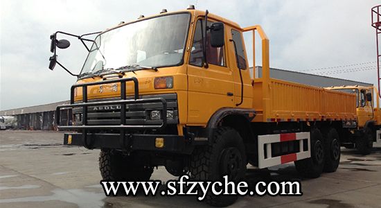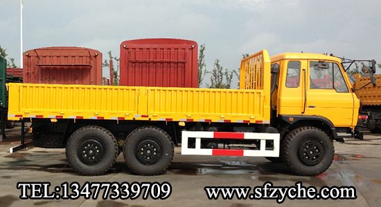 2、詳細(xì)配置:平頭一排半駕駛室,6*6驅(qū)動(dòng),康明斯190馬力,韶齒6檔變速箱,斷氣彈簧制動(dòng),貫通式中后驅(qū)動(dòng)橋,12.5R20越野胎,軸距 3500+1250mm,加厚雙層大梁,貨箱4850mm,帶軍用保險(xiǎn)杠。(新款仿天錦駕駛室加價(jià)1.5萬元)東風(fēng)越野卡車:m.hnpengtu.com