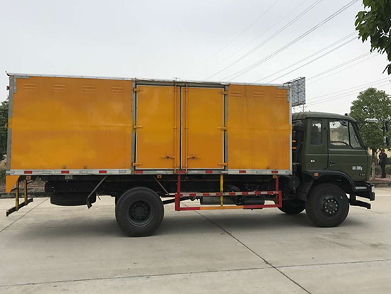 東風國五四驅(qū)越野廂式車廂體材質(zhì):廂體為雙層金屬骨架結(jié)構(gòu),外部為冷扎鋼板,內(nèi)壁采用鋁合金板蒙面,夾層為隔熱阻燃材料填充,鋁花紋底板,側(cè)對開門,后雙開門,廂體尺寸6050×2360×2100(mm)